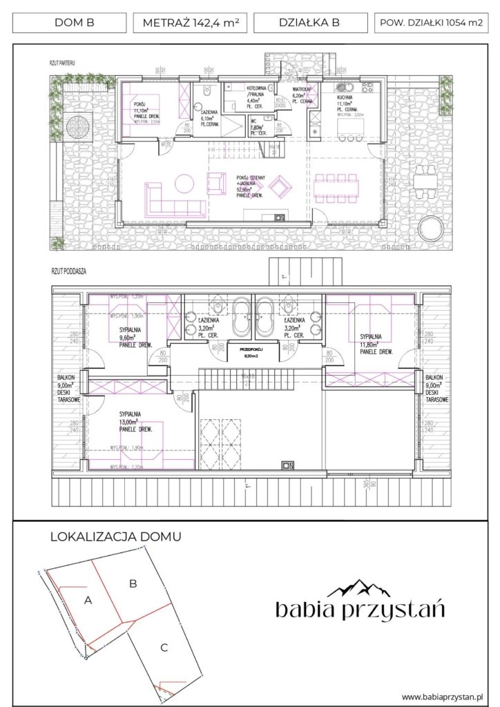 Babia Przystań to kameralna inwestycja zlokalizowana w malowniczej części Zawoi – Ryżowana. Projekt powstał z myślą o osobach, które szukają ucieczki od miejskiego zgiełku, nie chcąc rezygnować z komfortu, nowoczesnego designu i ekologicznych rozwiązań. To miejsce, gdzie architektura prowadzi cichy dialog z naturą, a główną rolę gra majestatyczny widok na Królową Beskidów – Babią Górę.