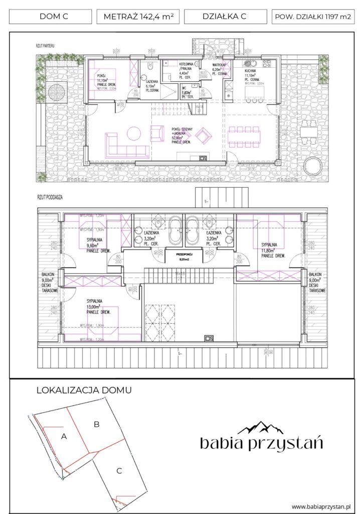 Babia Przystań to kameralna inwestycja zlokalizowana w malowniczej części Zawoi – Ryżowana. Projekt powstał z myślą o osobach, które szukają ucieczki od miejskiego zgiełku, nie chcąc rezygnować z komfortu, nowoczesnego designu i ekologicznych rozwiązań. To miejsce, gdzie architektura prowadzi cichy dialog z naturą, a główną rolę gra majestatyczny widok na Królową Beskidów – Babią Górę.
